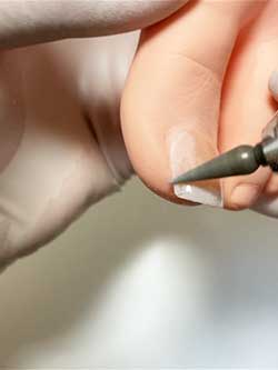 爪の厚みを整え補正具の密着を高めるために削ります。 -